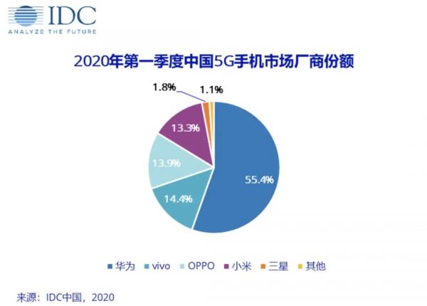 根据 IDC、Counterpoint 等多家分析机构的报告来看,至 2020 年第一季度,排名前五的手机厂商已经拿下了超过 90% 的市场。