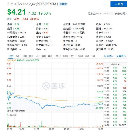 财报公布后,Jumia股价在当日盘前便跌落0.76%,截至13日收盘跌幅更是高达19.5%。从投资者们的反应来看,对Jumia的这份财报似乎也不够满意。股价依旧是Jumia的痛,回想上市之际Jumia的市值接近20亿美元,如今3.30亿美元的市值不免有点尴尬。