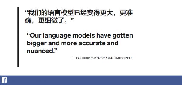 Schroepfer说道:“机器学习算法在语言学研究的帮助下,Facebook已经升级了检测算法。许多高科技公司正在对其处理语言的软件系统(例如谷歌的搜索引擎)进行改造,提高用算法解决诸如回答问题或澄清歧义等语言问题的能力。”