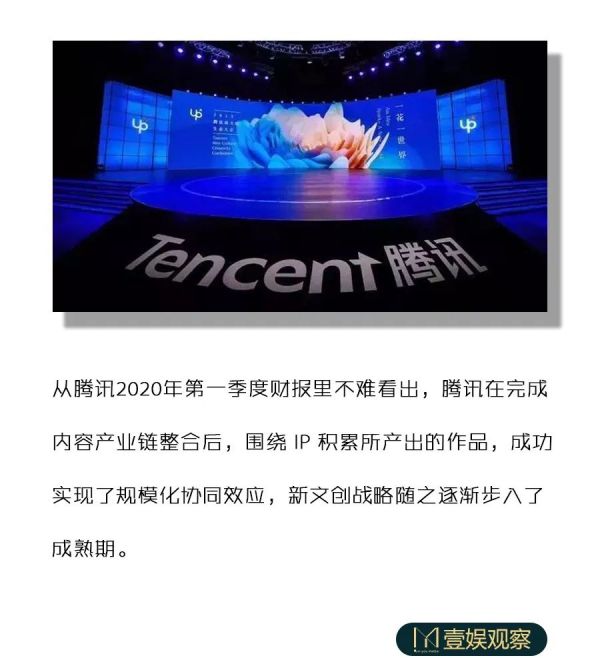 与此同时,腾讯也在不断布局大内容领域,成立了承载腾讯绝大部分内容产品的PCG事业群,以生产好内容为共同目标;收购了新丽等公司,持续完善IP开发产业链……在新文创战略下,这些布局开始不断释放价值,而新文创战略发展也日渐步入了成熟期。