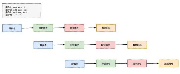 老K听后很赞赏我的思路,并补充到:“不仅是准备工作,像有些指令,比如加法,如果参与加法的数据不依赖前面指令的结果,咱们完全可以提前把这加法指令执行了嘛,把结果保存在缓存中,等真正轮到这条指令执行的时候,再把缓存中的结果写到内存中,这不也是节约了时间吗”