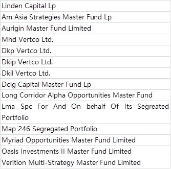 界面新闻记者从香港司法机构网站查阅到14家机构名单,其中包括Myriad、Oasis、Verition等境外对冲基金。