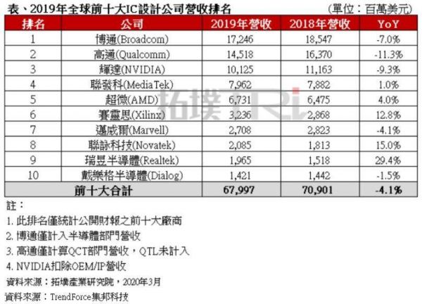 美国的 Fabless 公司相当强,高通、博通、英伟达等等,占据了前五名中的四席: