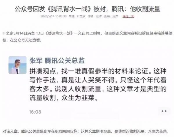 一方面,互联网头部公司里腾讯首先发布了财报,数据也相当漂亮,在各个行业里吸引了许多关注和讨论,次日开盘后腾讯股价涨了3%;另一方面,关于腾讯正面临“背水一战”的讨论也甚嚣尘上,席卷了社交平台、知乎、豆瓣等各个话题场域,让腾讯公关部门不得不下场发声。