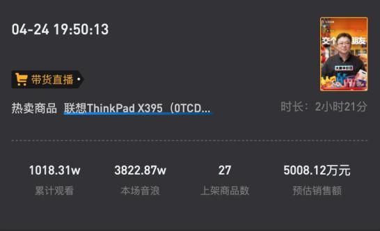 38件商品,最终只卖出了23.25万的销售额。对比当天同样在抖音直播带货的罗永浩,总销售额是5000多万。