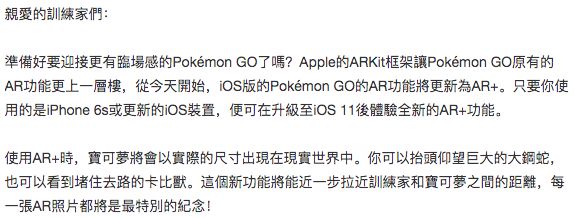最新的Pokémon GO用了苹果家的ARKit框架。