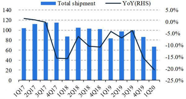 2、全球手机:1Q20 出货下滑 11.3%,预计海外需求 5 月起复苏