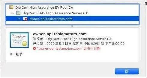 当晚就有车主通过系统查询,发现特斯拉服务器域名证书过期。