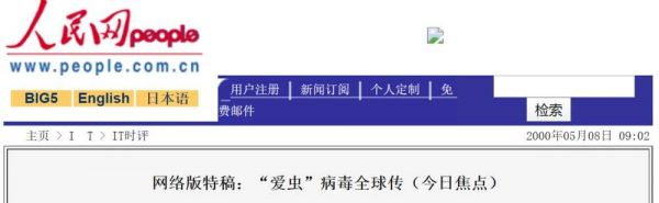 2000年5月4日,Love Bug首次出现后随即席卷全球,在世界范围内影响了约4500万台计算机,英国议会、美国五角大楼等都惨遭毒手,人民网当时专门刊发特稿,提醒人们保持警惕。