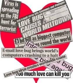 在Love Bug出现前一年,Melissa病毒被认为通过类似策略感染了100万台机器,然而Love Bug使以前的病毒相形见绌,并且暴露出日益增长的世界互联网连接是多么容易受到攻击。