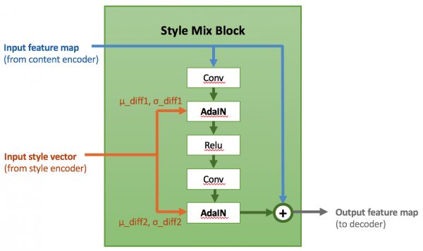 于是,我们重新定义了要注入进AdaIN的style为“信息增量”,如下式所示: