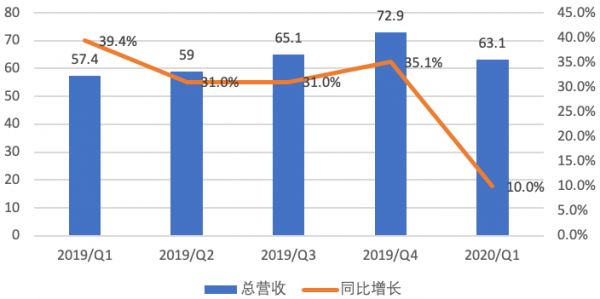 2019年第一季度到第四季度,腾讯音乐的营收分别为57.4亿元、59亿元、65.1亿元和72.9亿元,同比分别增长39.4%、31%、31%和35.1%,而2020年一季度的营收增速仅10%,增速明显放缓,虽然成本增速也是五个季度来最低,但无奈营收降幅实在太大,直接导致了利润大幅下滑。