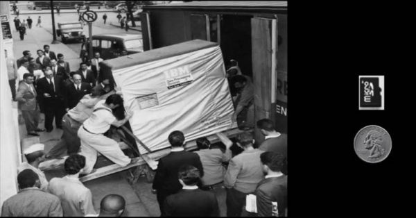 1951年的磁带机(左)和如今的SD卡(右)| 图源:TEDx