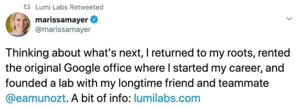 也许你没有听说过 Lumi Labs,但你一定知道它背后的创始人——谷歌的第 20 号员工、前雅虎 CEO,玛丽莎·梅耶尔(Marissa Mayer)。