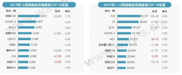 但这也意味着他们在中高端市场的竞争力不足。以比亚迪面向中高端市场推出的唐 EV为例,在乘联会给出的2019年纯电动车市场TOP10车型排名中,Model 3以3.7万辆的成绩排在第四,而比亚迪唐 EV榜上无名,全年销量仅为5337辆。