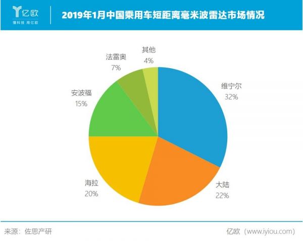 2019年1月,博世、大陆、电装与安波福占据中国乘用车长距毫米波雷达95.7%的市场份额,维宁尔、大陆、海拉、安波福、法雷奥占据中国乘用车短距毫米波雷达96.4%的市场份额。