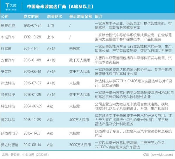 2014年至2016年三年间,中国涌现出大批毫米波雷达初创企业。“海归派”代表如芜湖森思泰克、杭州智波;“科研派”代表如行易道、南京隼眼、苏州安智;“实业转型派”代表如深圳安智杰、德赛西威、雷博泰克等。