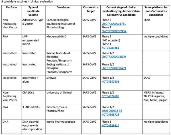 那么,其余国家的新冠疫苗研发的进度如何呢?