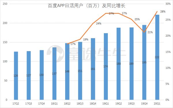 3月,百度App日活跃用户数达到2.22亿,同比增长28%;App端内搜索量同比增长45%,信息流用户时长同比增长51%,用户行为从浏览器搜索转向基于人工智能的App内搜索。