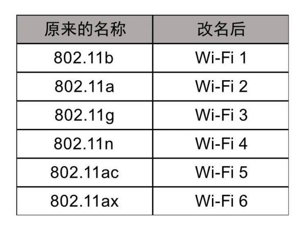 Wi-Fi 6 还会被叫做 802.11ax (或者 IEEE 802.11ax),后面一种命名方式对普通的消费者而言,不仅难以记忆还没办法比较哪一个更好。好在 IEEE 标准协会注意到了这点,在 2018 年 10 月将 802.11ac 改名叫做 Wi-Fi 5,更老的 Wi-Fi 协议也同样变为 Wi-Fi + 数字 的形式,方便用户进行记忆和对比:数字越大的,版本越新。