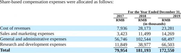 哔哩哔哩股权激励支出明细,来源20-F年报