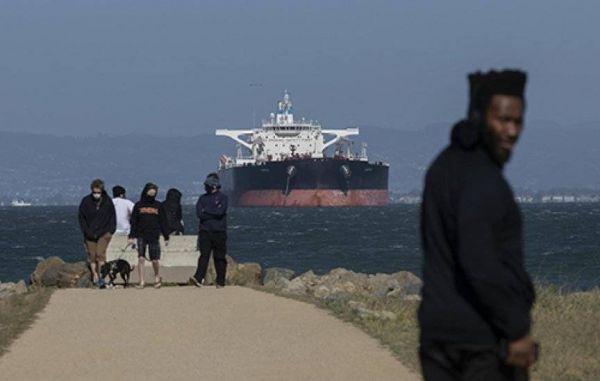 2020年4月26日,一艘油轮停泊在美国旧金山湾