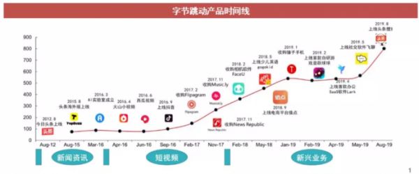 具体而言,将教育定位为未来的战略方向,上线“好好学习”、在线英语gogokid、K12清北网校等多款产品;从轻量游戏进入重度游戏的深水区,与腾讯游戏发生正面对垒;从试水院线转网模式到电影、影视剧节目制作,与BAT正面抢夺长视频市场蛋糕;在疫情期间大力推广办公软件“飞书”,与阿里旗下的钉钉、腾讯的企业微信站上同一竞技场......