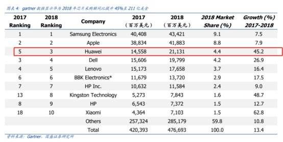 另一方面,华为已经未雨绸缪,加大了核心芯片及元器件的备货,保证后续供应:据gartner数据显示,华为2018年芯片采购额同比提升45%至211亿美金,在手机厂商中这是一个很高的数据,对比来看三星、苹果只有7%。