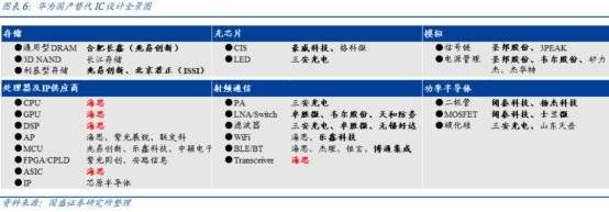 因此,对于布局华为自研芯片领域的公司来说,其在华为手机中的份额或将加大;对于华为尚未涉及的领域,国产厂商的替代进程也将加快。