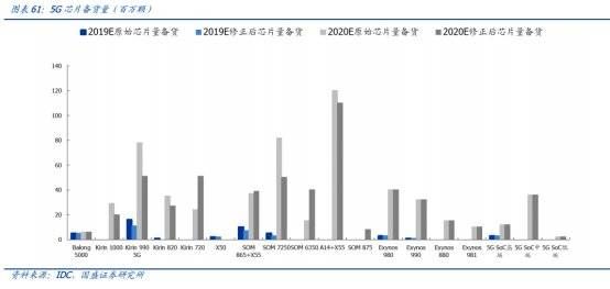 从全年底开始,台积电产能就供不应求、订单超饱满,使其业绩大涨并大手笔扩产;接着有媒体爆出,台积电的5nm产能被苹果和华为包了,从下图也可看出,苹果与华为的芯片备货量最高。