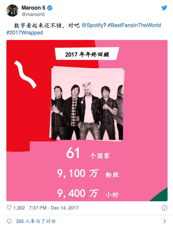 2017年,Spotify推出了“年终回顾”功能,一个仅由用户生成的内容形成的广告功能。