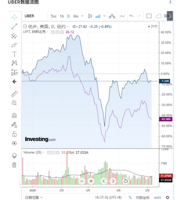 2020年3月,UBER便承认,疫情可能对公司业务构成重大风险。同月,为了减少冠状病毒的传播,UBER暂停在美国和加拿大提供拼车服务。随后,其“难兄难弟”LYFT来福网约车公司也宣布暂停北美地区的多人拼车服务。