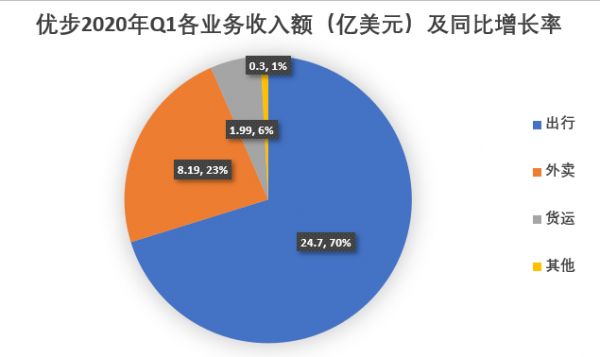 5月初,优步发布2020年第一季度财报。财报显示,公司一季度营收35.4亿美元,亏损达到29亿美元(约合206亿元)。出乎意料的是,其外卖平台优步Eats的业务量却在疫情之下实现了逆势增长,营收为8.19亿美元,同比增长高达53%。