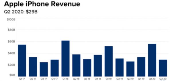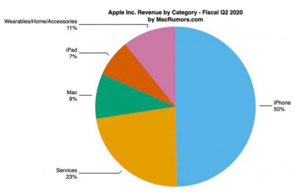 然而,这同时也意味着苹果的销售核心领域——以iPhone为首的产品业务在疫情的打击之下陷入低迷之势。