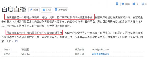 首先看一下百度对于直播业务的定位,