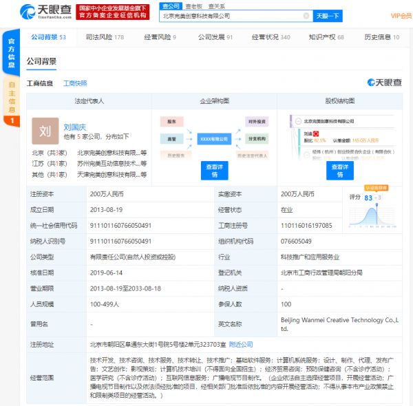 天眼查数据显示,北京完美创意科技有限公司成立于2013年8月,注册资本200万人民币,法定代表人为刘国庆,公司经营范围包括预防保健咨询(不含诊疗活动);医学研究(不含诊疗活动);互联网信息服务等。据了解,更美APP的开发者,即为北京完美创意科技有限公司。