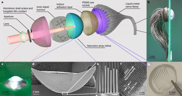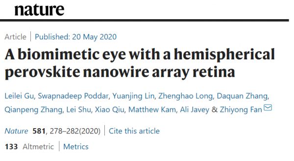 事实上,这种画面不仅出现在科幻小说中,在现实中,许多科学家也都在致力于仿生眼的研发,不过如何制造适合人类的仿生眼,尤其是人造视网膜的研发严重限制了仿生眼的发展。而在本周《自然》发表的一篇论文中,由香港科技大学范智勇教授带领的团队,成功开发了一种可以媲美人类视网膜的人工视网膜,由该视网膜组成的仿生眼在某些情况下甚至比人眼看的更清楚。