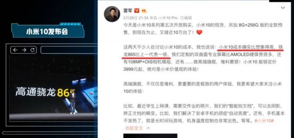 今年2月,首部搭载高通骁龙865处理器的国产手机——小米10发布后,雷军表示:“骁龙865比上一代贵一倍。”小米副总裁卢伟冰也在微博上回复:处理器+5G射频的成本超过1000元。
