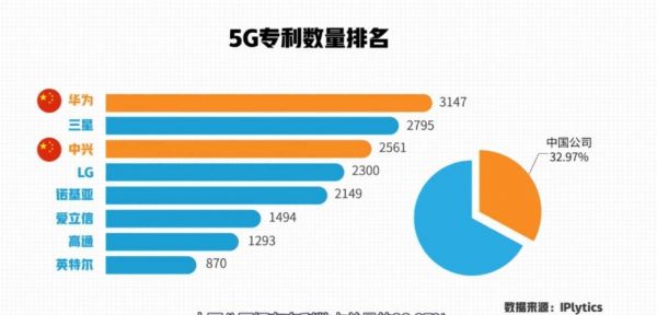 时至今日,越来越多的国产厂商,开始自主研发芯片;5G专利数排名上,华为与中兴分居第一和第三,中国公司拥有专利数占总量的32.97%。
