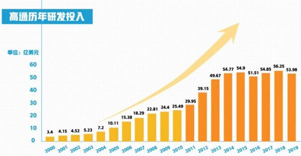 其实“高通税”的背后,是他们整个90年代的卧薪尝胆与谋篇布局,并一直保持高额的研发投入,并最终才在3G、4G时代一鸣惊人。