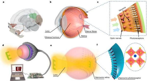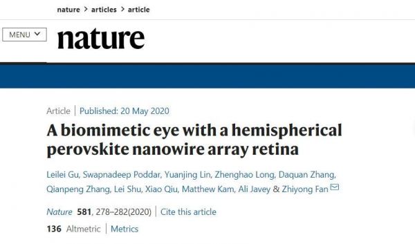 在今天刚刚出版的《自然》杂志上,香港科技大学顾磊磊(Leilei Gu)、范智勇等人在论文《A biomimetic eye with a hemispherical perovskite nanowire array retina》中提出了一种创新的凹半球视网膜,迅速引来了多家媒体的报道。