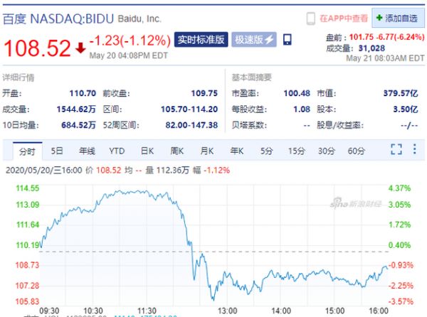 百度盘前跌超6% 路透社称百度考虑从纳斯达克退市