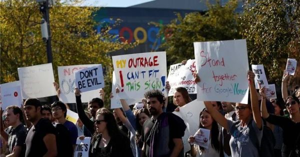 大量员工参与抗议活动,举出 Do not be evil 的标语