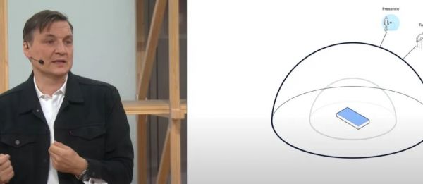 用 ATAP 团队一个演讲者的形容,手机外面就好像罩了一层气泡,它不需要你触碰到手机屏幕,就能提前感知你的动作,了解你的意图。他们提到,之前不管是触控交互还是语音交互,设备都是在被动接受指令,而雷达可以让设备拥有主动感知、提前感知的能力,变得更智能。