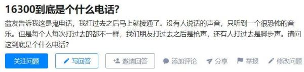 “16300”是一个电信的官方服务号码,打过去以后马上接通,还会发出诡异的声响。