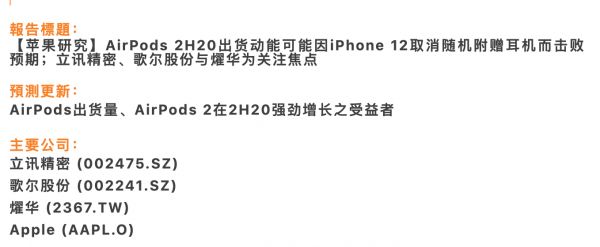 有趣的是,郭明錤表示,iPhone 12取消耳机赠品,目的是刺激AirPods的销售,还会进行AirPods促销活动。