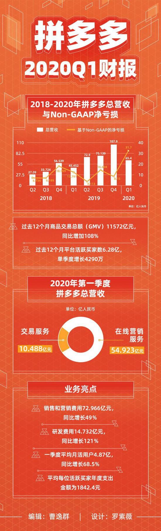 一张图看懂拼多多2020年Q1财报:12个月GMV达11572亿元