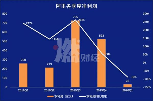 我们对比一下阿里过去5个季度的净利润,就知道一季度有多惨。