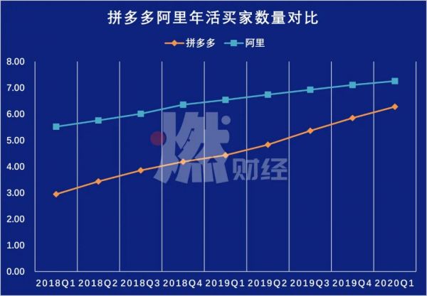 截止一季度末,阿里年活跃用户7.26亿人,比上季度新增1500万人,拼多多新增用户4290万人,总量达到6.28亿人,跟阿里的差距已经缩小至不足1亿人。拼多多上季度的GMV增速是99%,天猫实物GMV增速是10%。