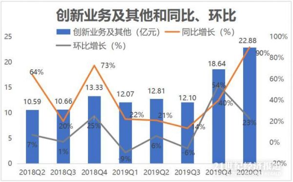 2020年一季报营收1143亿元,同比增长22%,超出市场预期的1070.38亿元。